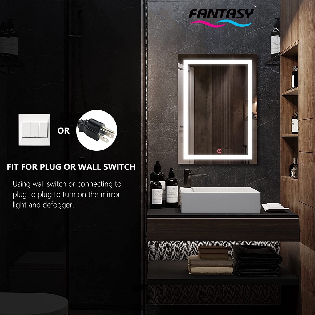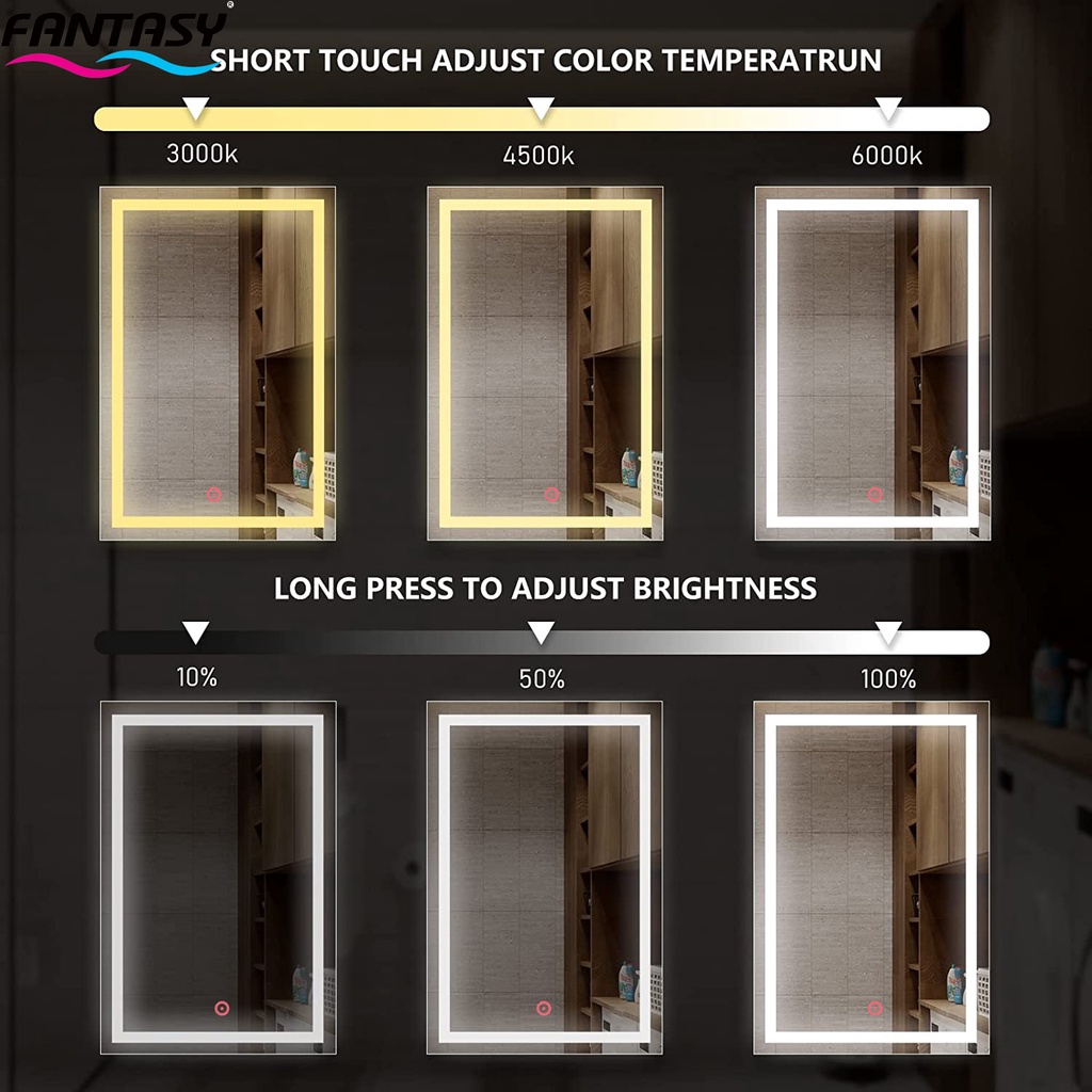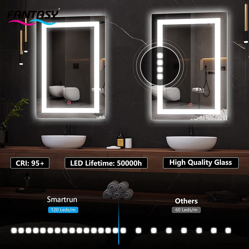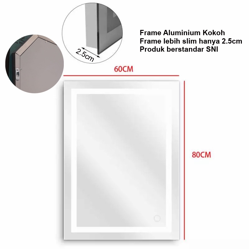Fantasy LED Mirror 3 Color Touch Screen - Cermin Rias 60x80cm Cermin LED Dinding Cermin Make Up Cermin Dekorasi