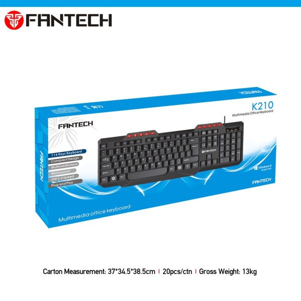 Fantech K210 Waterproof Silent Ergonomic Design Wired Multimedia Office Keyboard