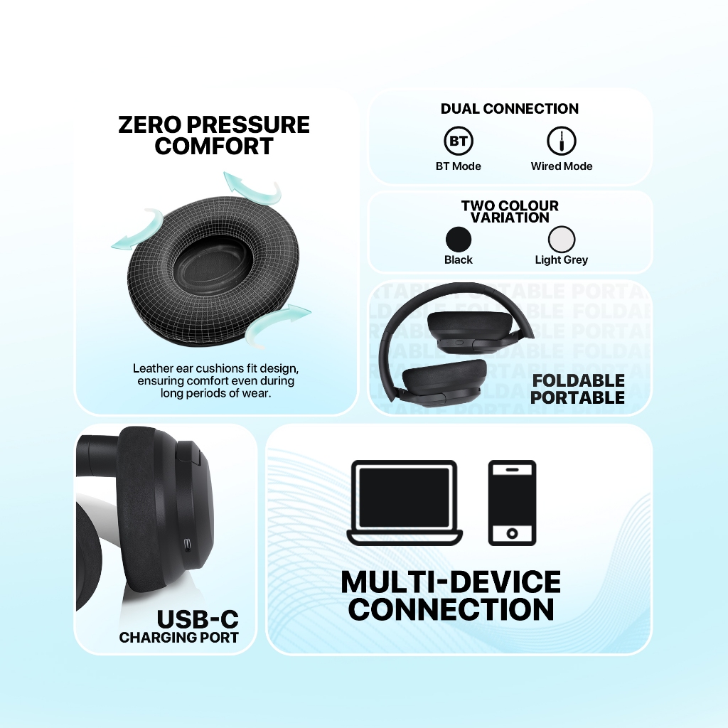 Fantech Headphone GO VIBE WH05A Wireless ANC Headset BASS BOOSTED Bluetooth 5.3 Noise-Cancellation