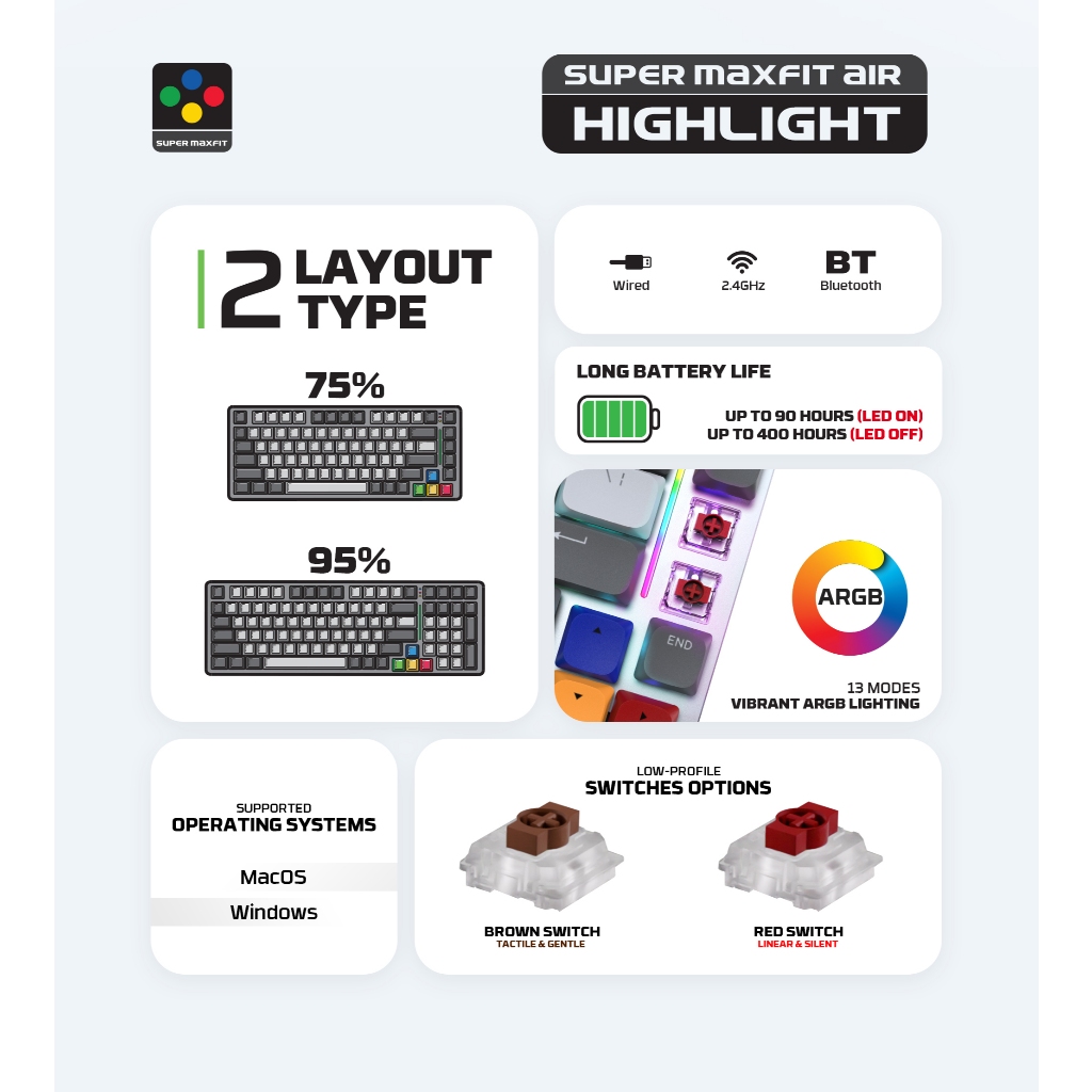 Fantech MK916 SUPER MAXFIT AIR99 ARGB Wireless - 95% Mechanical Gaming Keyboard