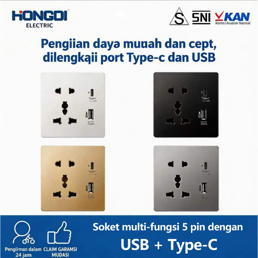 Fast Charging Colokan Dinding Stop Kontak Universal UK EU US 2 Port USB & Type C