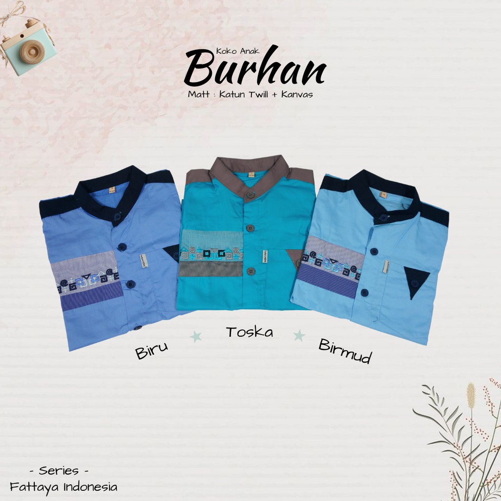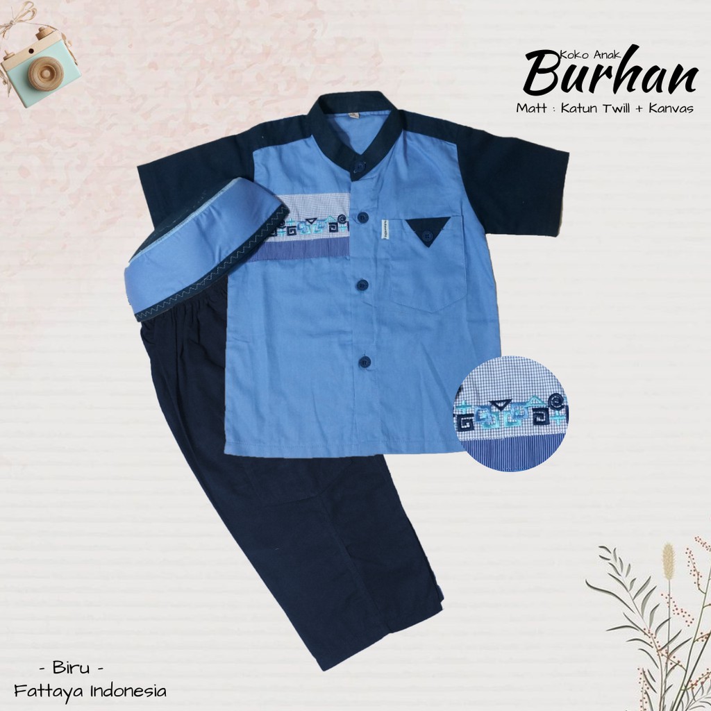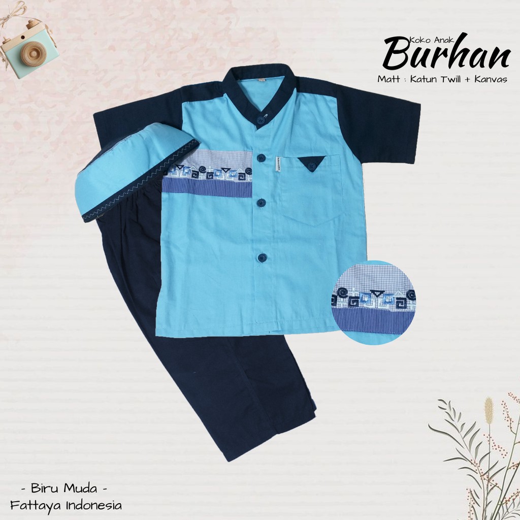 Fattaya Premium Koko Anak Burhan - Baju Muslim Laki-laki Busana Putra Islami untuk Buah Hati Setelan Lengan Pendek Stelan Fashion Pria Set Umur 1 Tahun sampai 9 Tahun Bahan Katun Twill Eksklusif Adem Nyaman