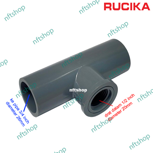 Faucet Tee Drat Dalam 1/2 Inch x Pipa 3/4 Inch
