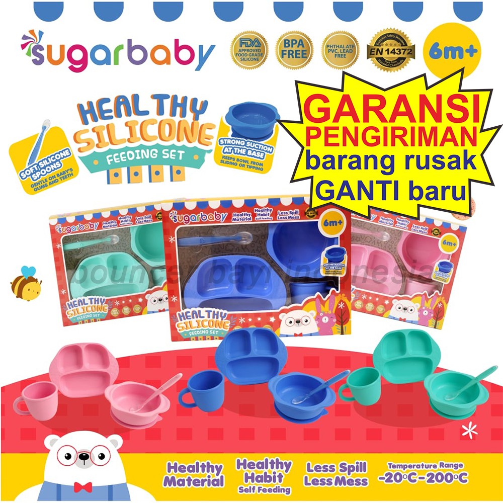 Feeding set makan bayi sugar baby piring set mangkok silikon slaber sugarbaby 4 in1 healthy silicone