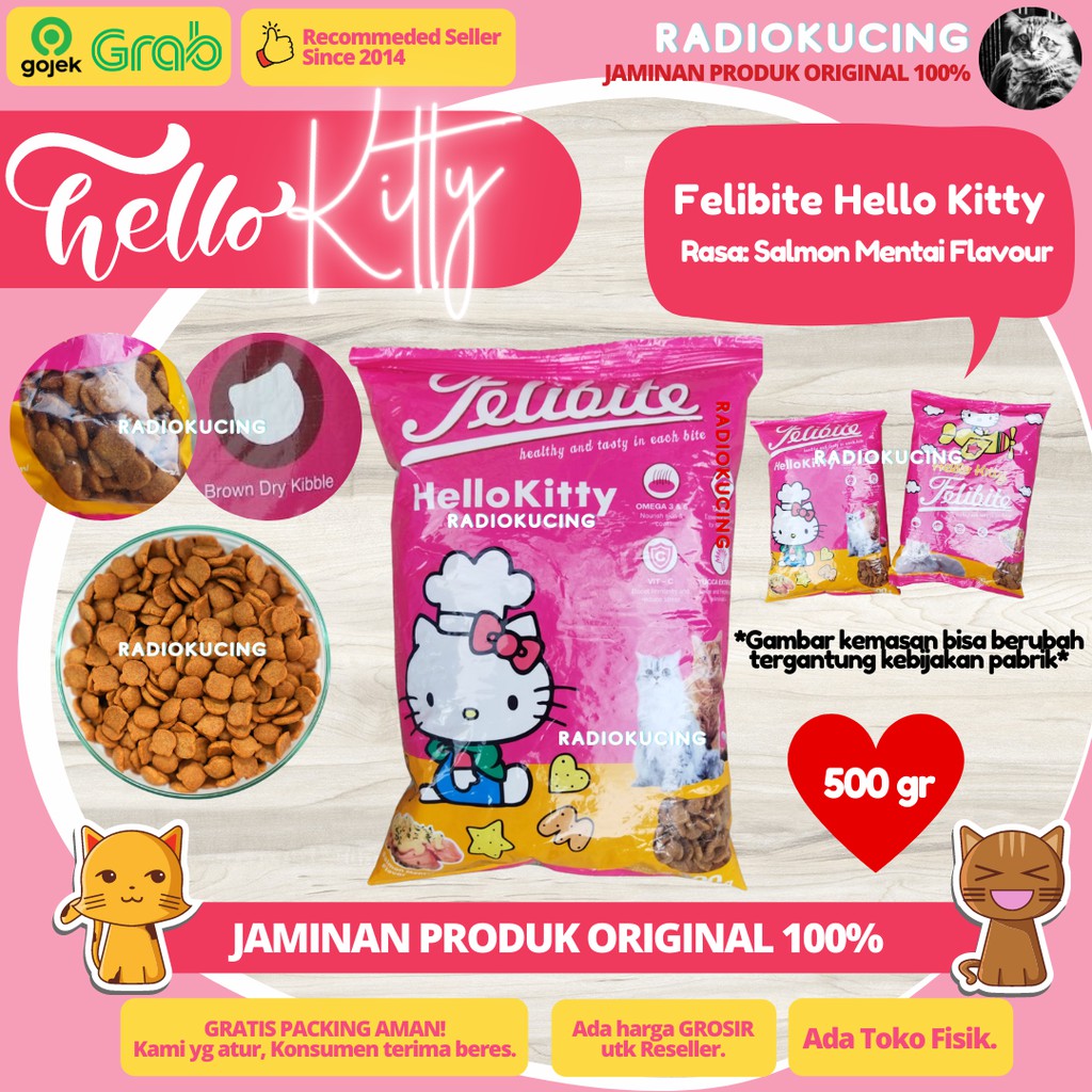 Felibite Hello Kitty Salmon Mentai Flavour 500 gr Makanan Kucing [ JUWIES RADIO KUCING ]