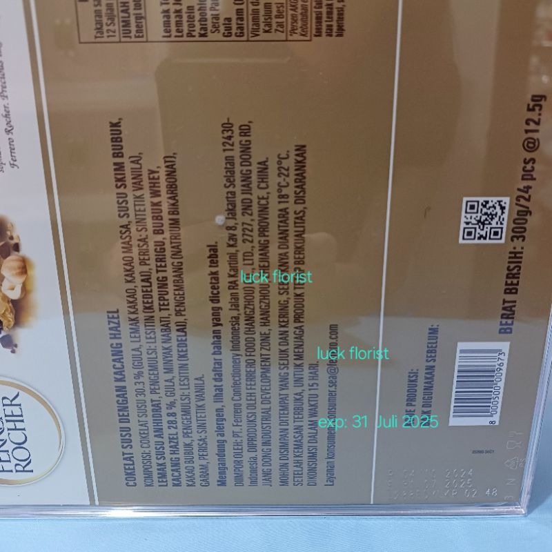 Ferrero Rocher t24 300 gr/ferrero rocher isi 24 pc/coklat ferrero rocher