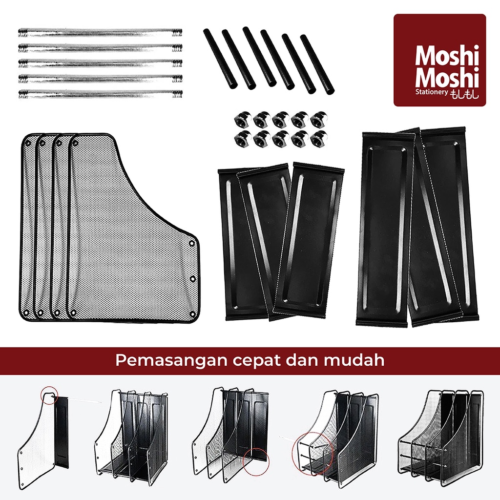 File Box Foldable Steel 3 Layer Rak Penyimpanan Dokumen 3 Sekat Jaring Besi