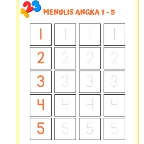 File Digital Printable Worksheet Angka / Lembar aktivitas anak
