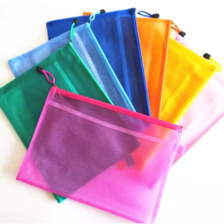 File Folder Document A4 Dan B5 Kantong Penyimpan Dokumen dengan Resleting / Map Warna Jaring Dalam Plastik