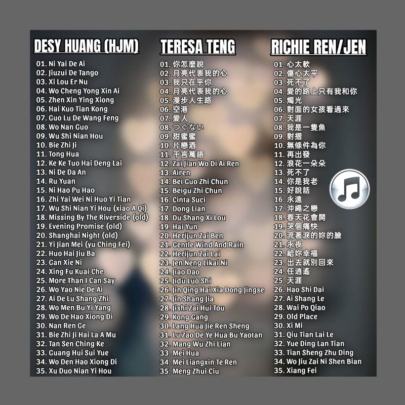 KASET MP3 LAGU 3 PENYANYI POP MANDARIN - KASET MP3 MOBIL LAGU TERBARU - KASET MP3 TERASA TENG - LAGU POP MANDARIN - LAGU MANDARIN - KASET MP3 MOBIL - KASET MP3 LAGU TERBARU - KASET MP3 POP MANDARIN