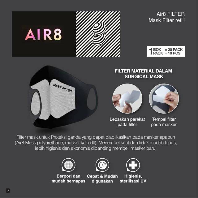 Filter Masker Air 8 - Filter Masker Polyurthane/Kain/Scuba - Filter Matrial Dalam Surgical Mask
