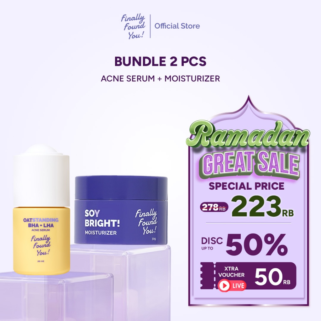 Finally Found You! ACNE TREATMENT 2 PCS: Soy Bright! Moisturizer 30gr & OATSTANDING BHA + LHA Acne Serum 20ml