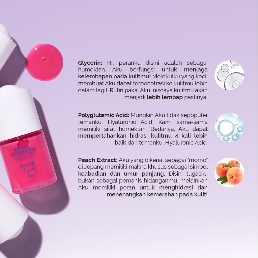 Finally Found You! PEACH + VITAMIN B12 Double Barrier & Calming Serum Untuk Menghidrasi, Merawat, Menenangkan Kulit dan Skin Barrier 20ml