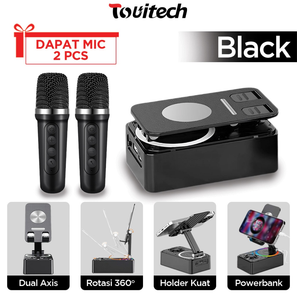 TOUITECH 5IN1 Speaker Bluetooth PowerBank Phone Holder Stereo Mic Karaoke Portable BMS18