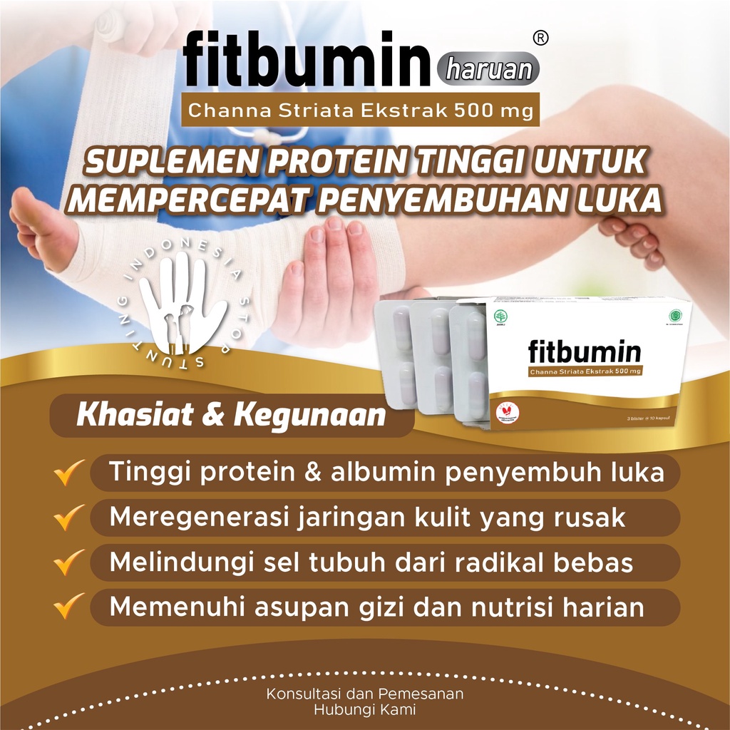 Fitbumin Haruan - Obat Pengering Luka Operasi Ekstrak Albumin Ikan Gabus - Isi 30 Kapsul