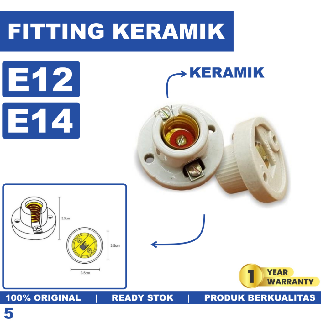 Fitting Lampu E14 E12 Keramik Porcelain Fiting Plafon E 14 E 12 Fitting Tahan Panas