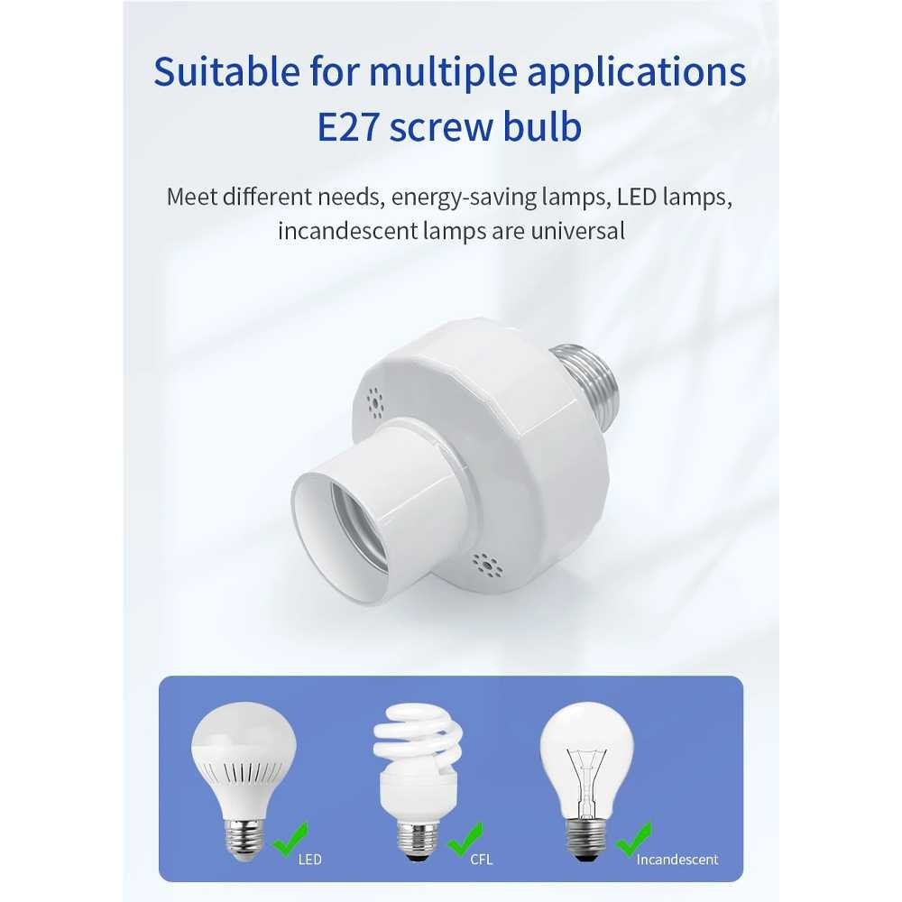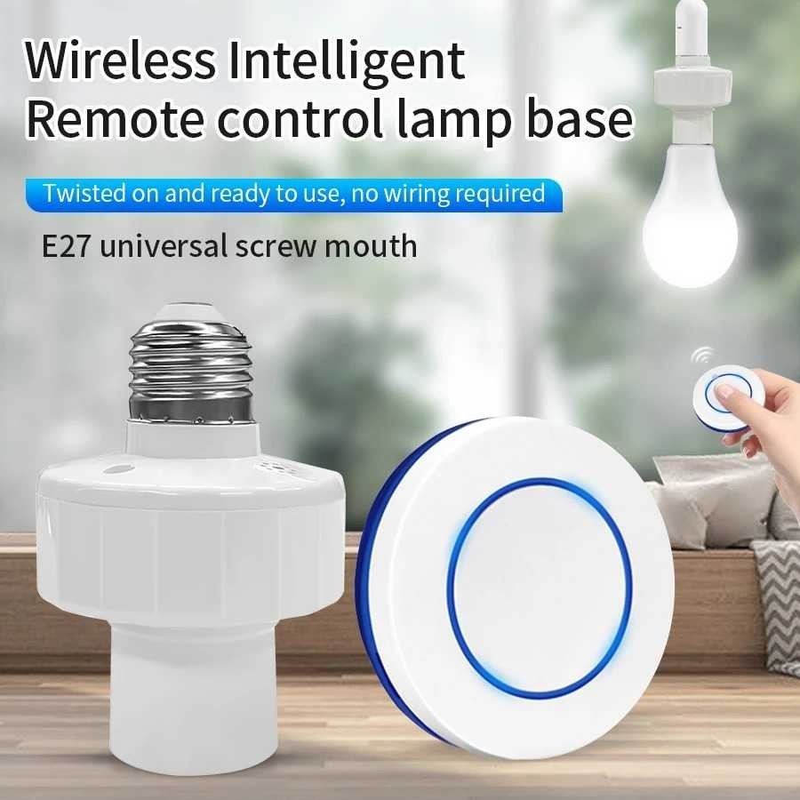 Fitting Lampu Remote Control Wireless E27 Smart Lamp Holder Adaptor Bohlam Nirkabel Frekuensi 433MHz Jarak Jauh Saklar Otomatis Tanpa Kabel Praktis Aman Tahan Panas Fitting Lampu Tidur Kamar Ruang Tamu 100W 240V Rumah Pintar Modern