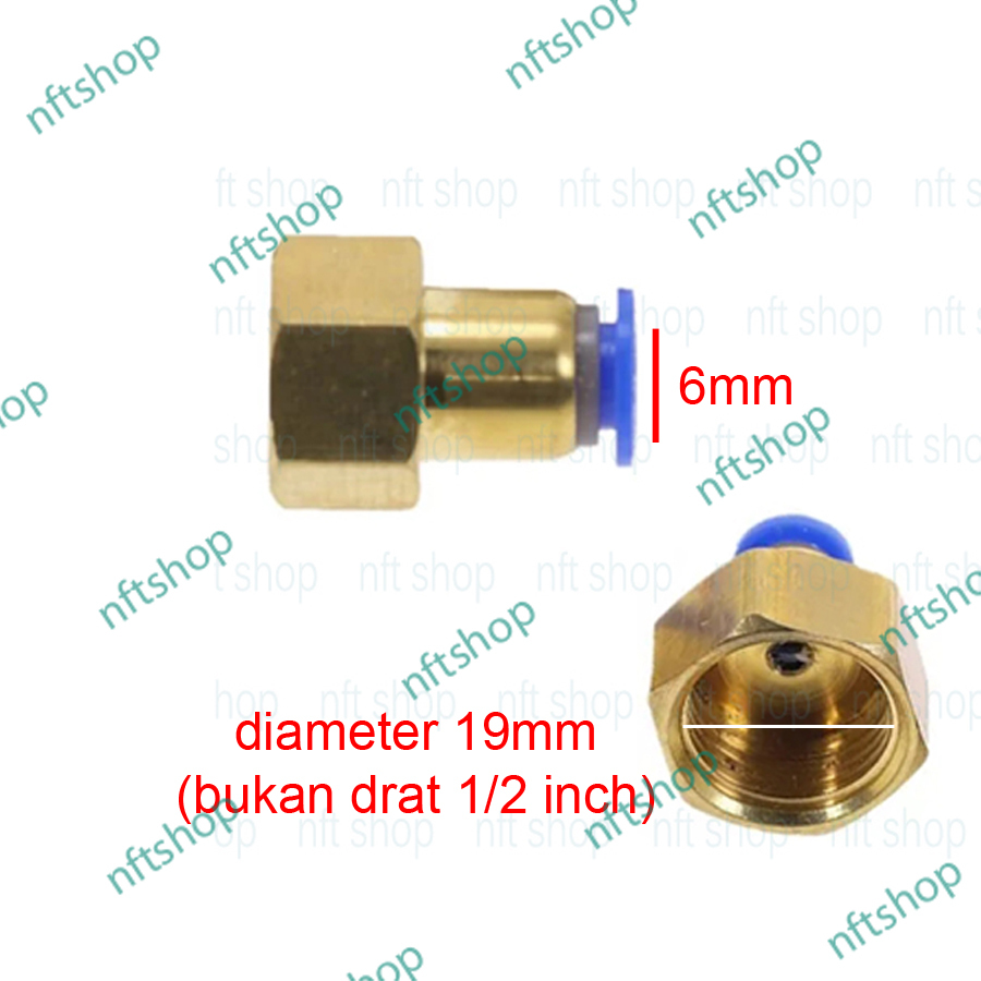 Fitting Pneumatic Female Pompa DC 6mm Kuningan