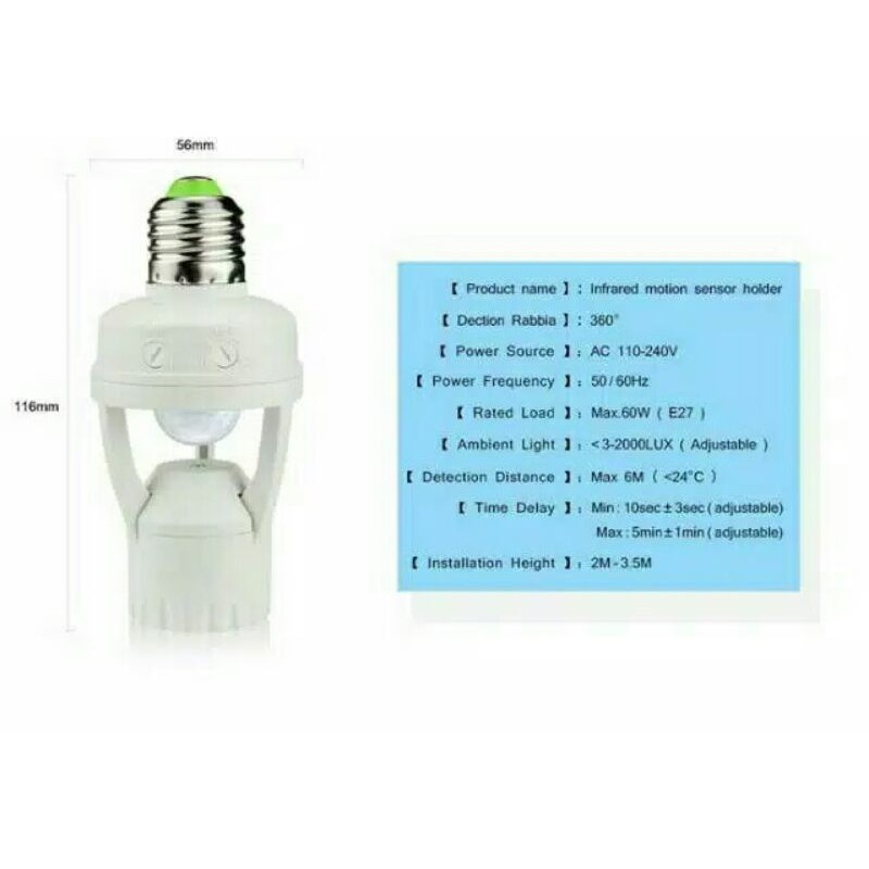 Fitting lampu sensor gerak dan sensor cahaya bentuk bulat