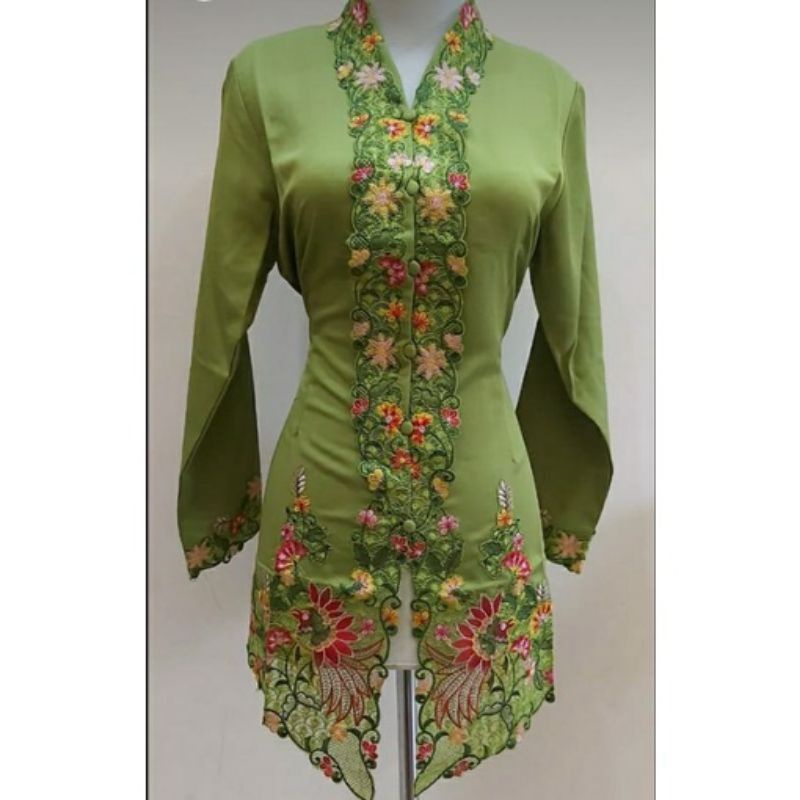 Fk-Atasan kebaya encim katun bordir motif merak - kebaya encim katun adat Betawi - terima seragaman