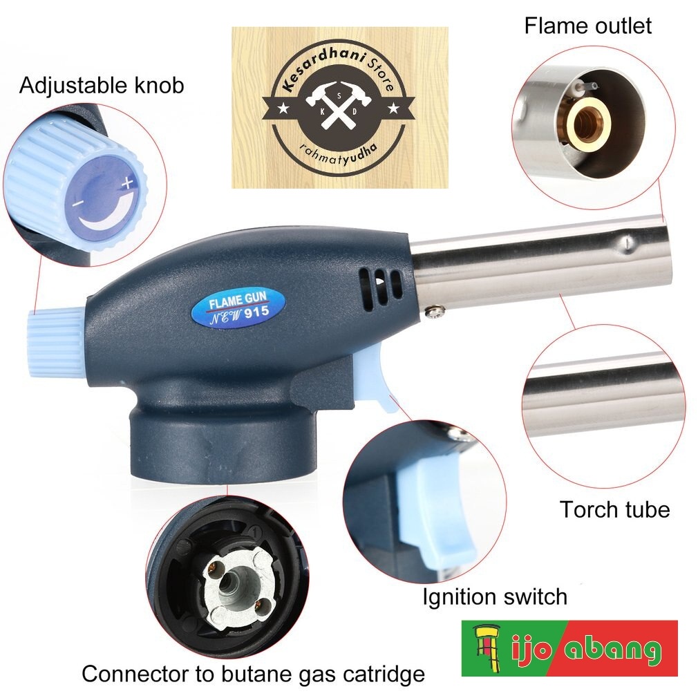Flame Gun Portable Kepala Gas Torch Fire Thrower Pemantik Api Lighter Otomatis Automatic Korek BBQ