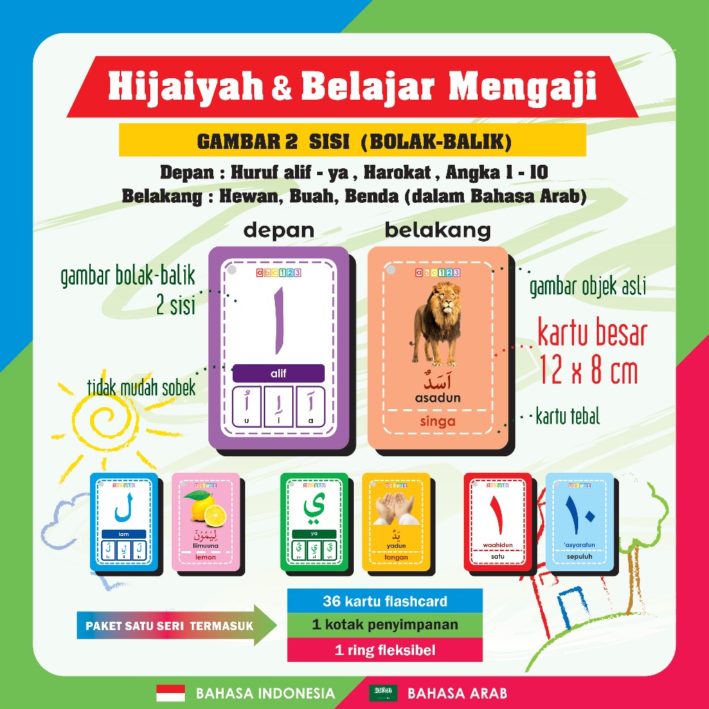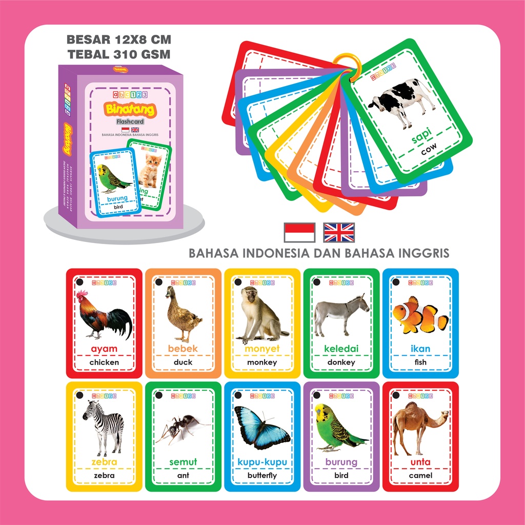 Flash Card Alfabet Huruf / Angka / Binatang . Flashcard Hewan Mainan Edukasi Kartu Pintar Anak