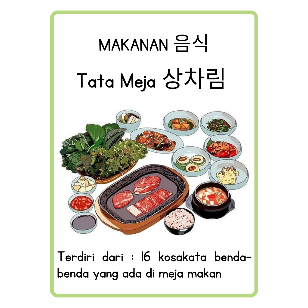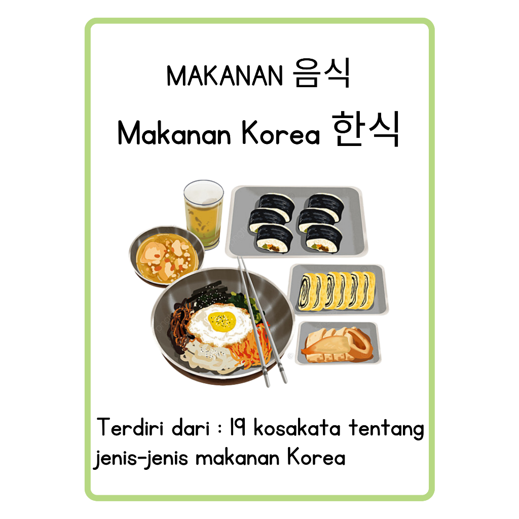Flash Card Bahasa Korea Tema : Makanan (Premium Art Cartoon)
