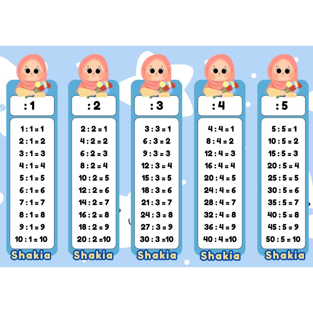 Flash Card Pembagian Anak TK SD Kartu Tabel Matematika Pembagian 1 sampai 10 Alat Belajar Matematika