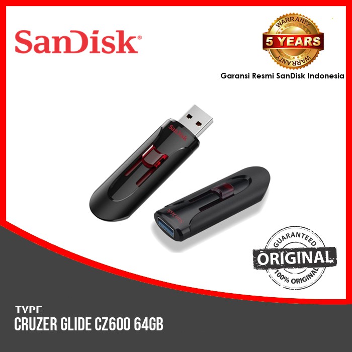 SanDisk Cruzer Glide CZ60 Flashdisk Flash Disk 64GB - Garansi 5 Tahun