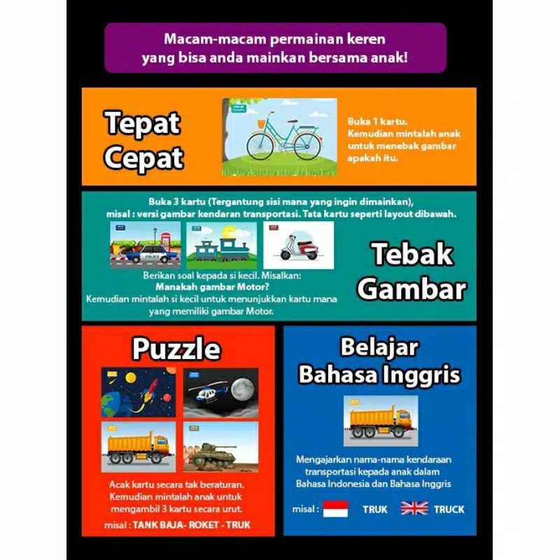 Flashcard Kendaraan Transportasi / konsep flash card kartu pintar balita anak