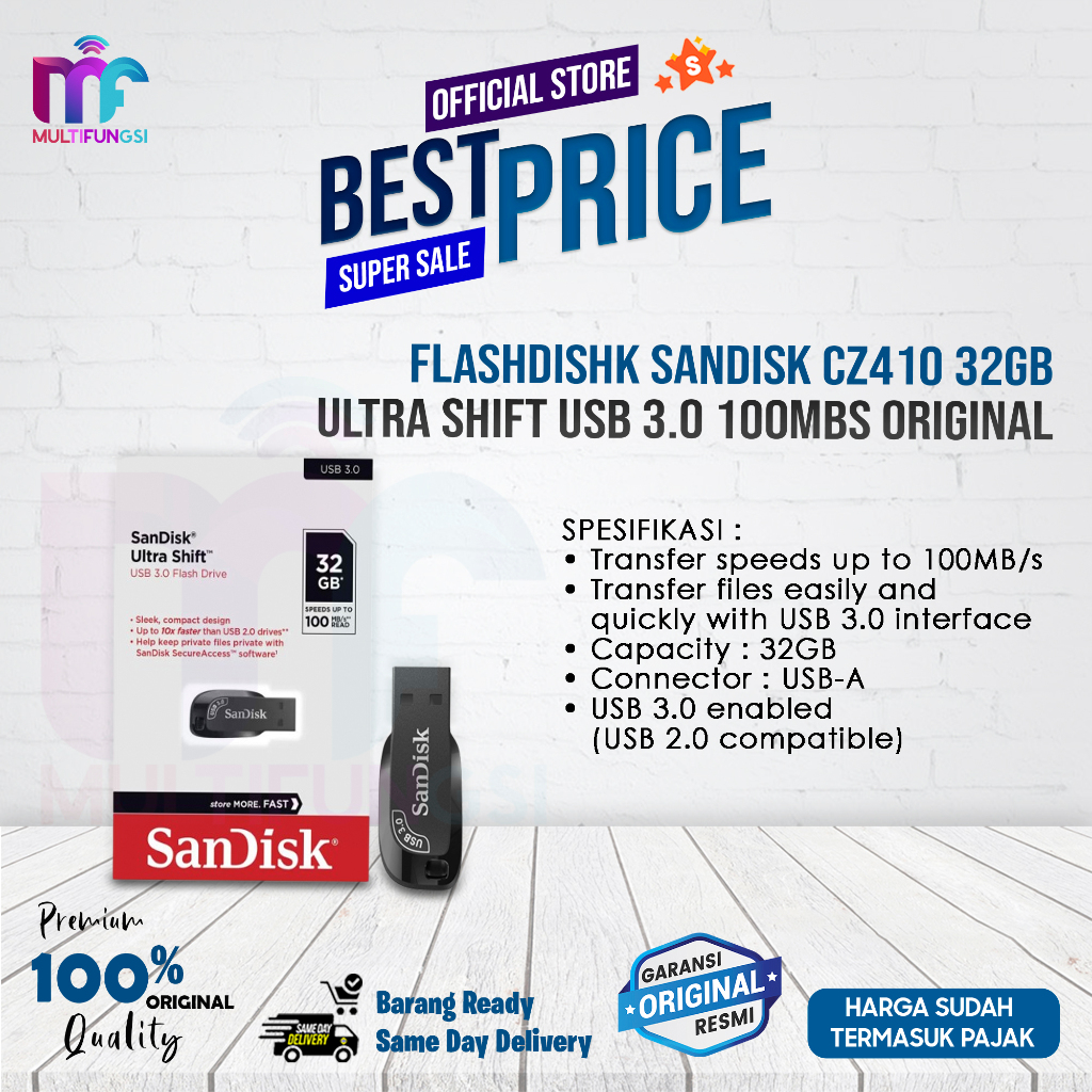 Flashdishk Sandisk CZ410 32GB/64GB/256GB/128GB Ultra Shift USB 3.0 100MBs Original