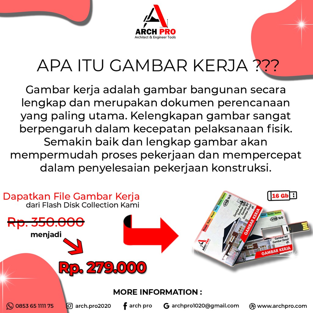 Flashdisk 16GB Gambar Kerja Rumah (Gambar Arsitek, Gambar Sipil, Gambar ME, Gambar Detail, dll)