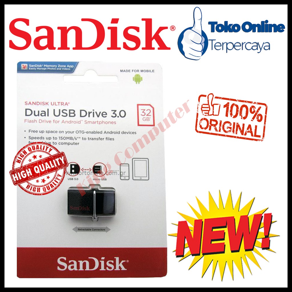 Flashdisk OTG 32gb Sandisk Dual Drive USB3.0 (Black)