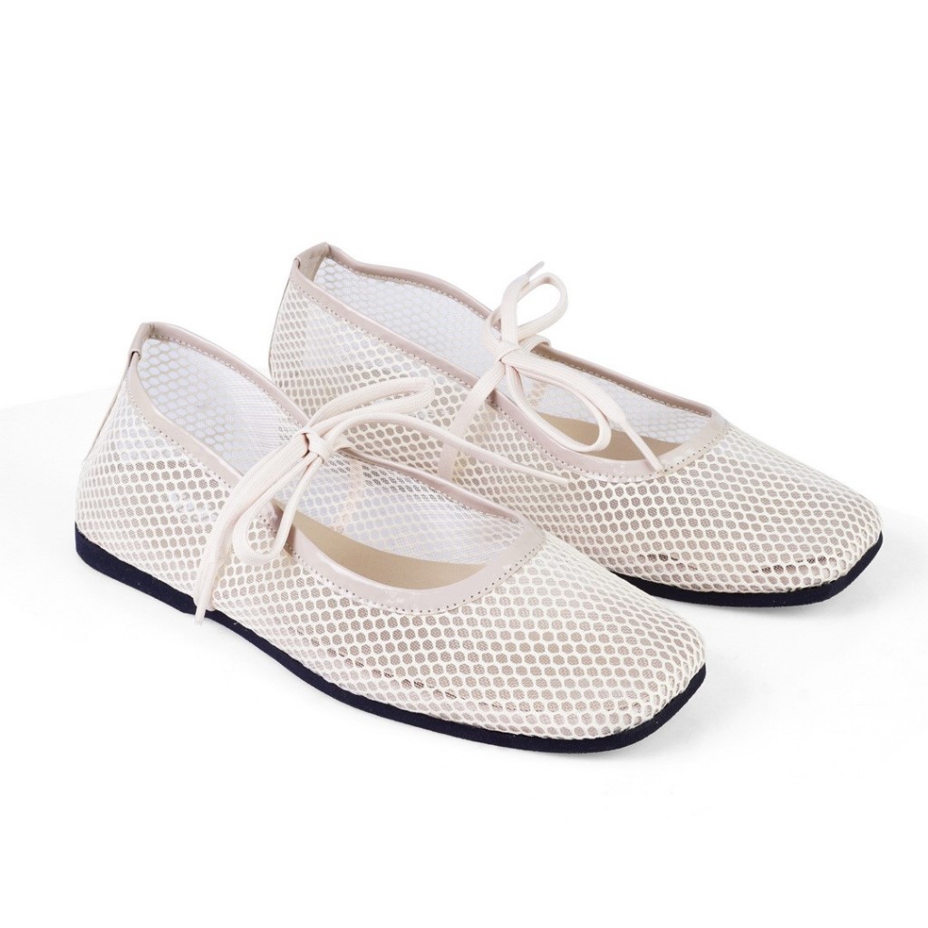 Flatshoes Wanita Shine Sepatu Mesh Jaring Hitam Tali