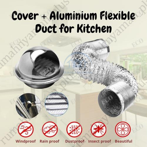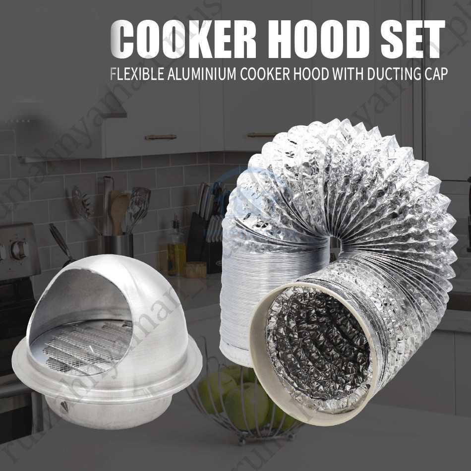 Flexible Ducting 4 Inch Pipa Cerobong Asap Aluminium Tahan Panas Untuk AC Exhaust Cooker Hood