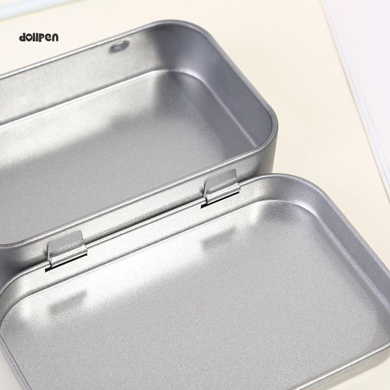 Flip Cover Silver Kotak Besi Kecil Kotak Penyimpanan Persegi Panjang Kotak Penyimpanan Logam Buram /dollpen