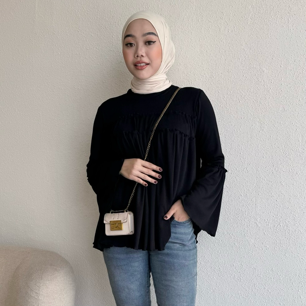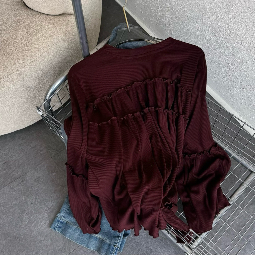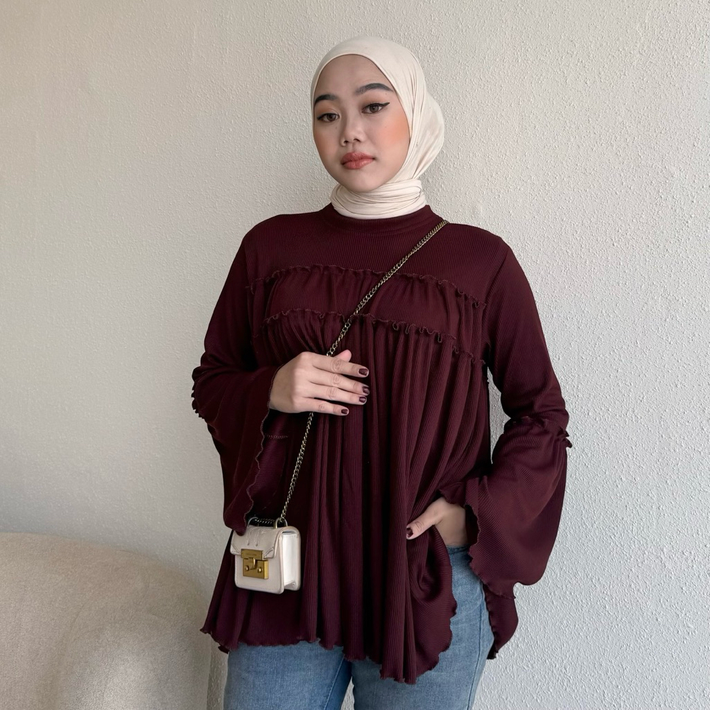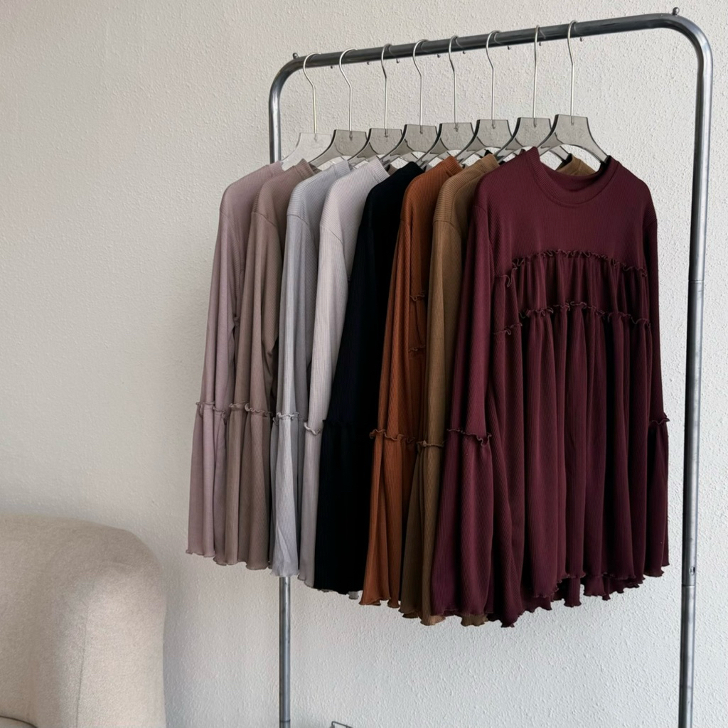 Floral Id - Blouse Knit Rib Taupia Kaos Polos Lengan Panjang Ruffle Basic Premium