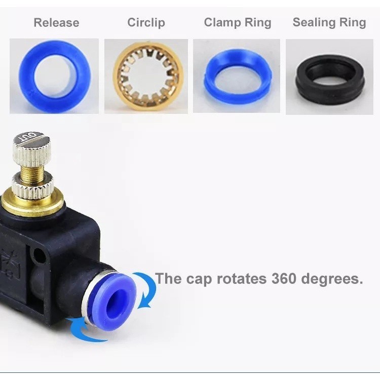 Flow Speed Control 6 x 6 mm Valve Fitting Pneumatic Kran Slip Lock Selang Angin Air Kompresor Udara 6mm PU PE FPU-912