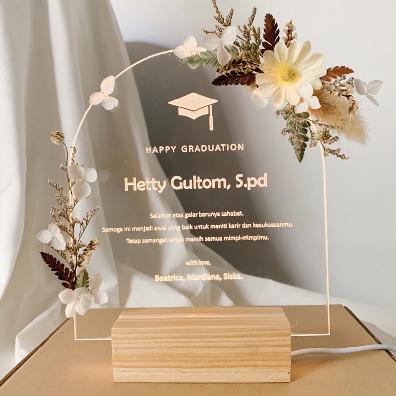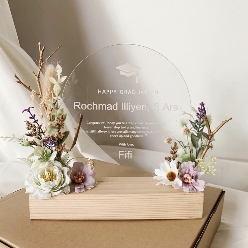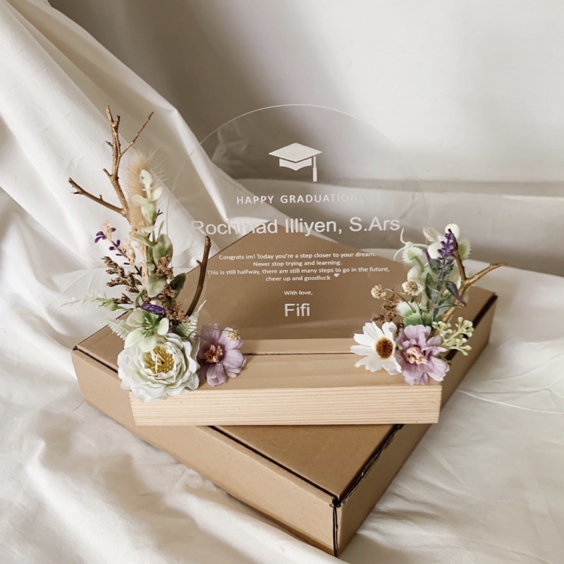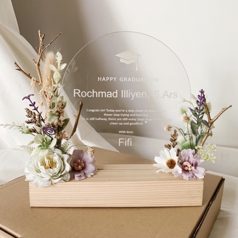 Flower on acrylic (kado wisuda/ ulang tahun/wedding)