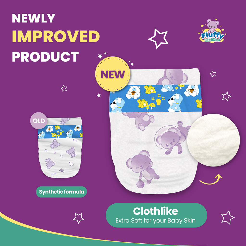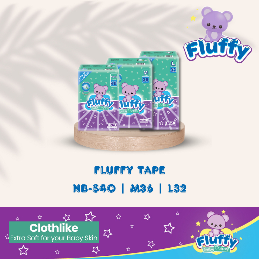 Fluffy Popok Bayi Tipe Perekat Tape NB-S40 M36 L32 Jumbo Pack Halal Clothlike Anti Bocor Anti Ruam