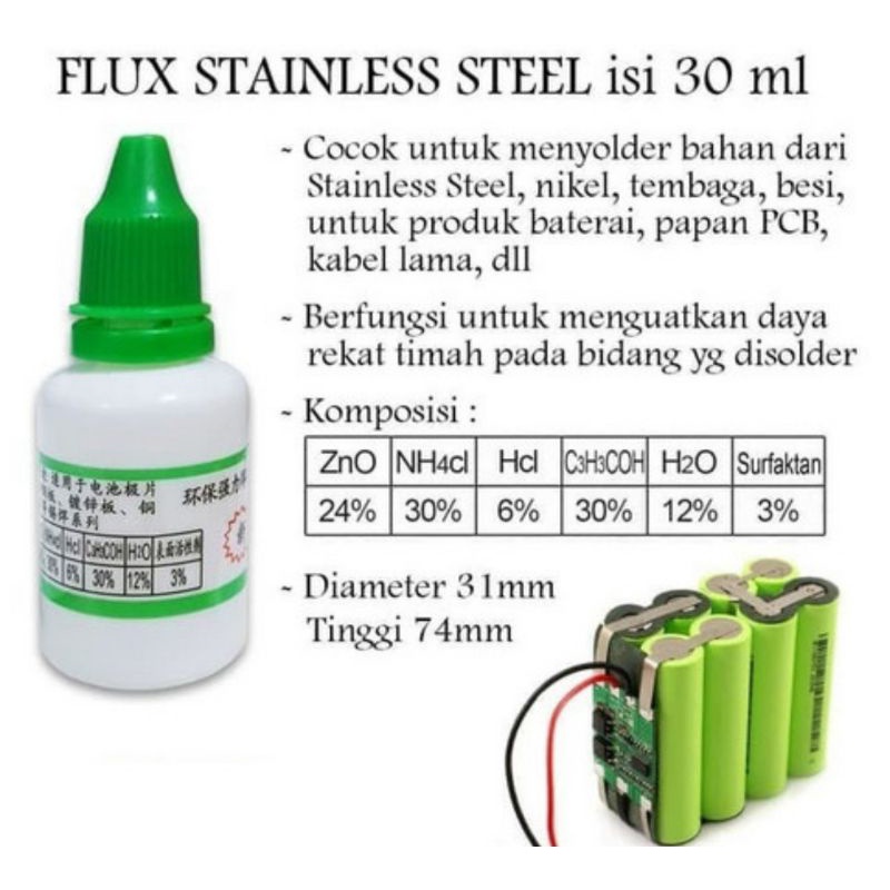Flux Stainless Steel Perekat Solder Nikel Seng Baterai Cairan Easy Oil
