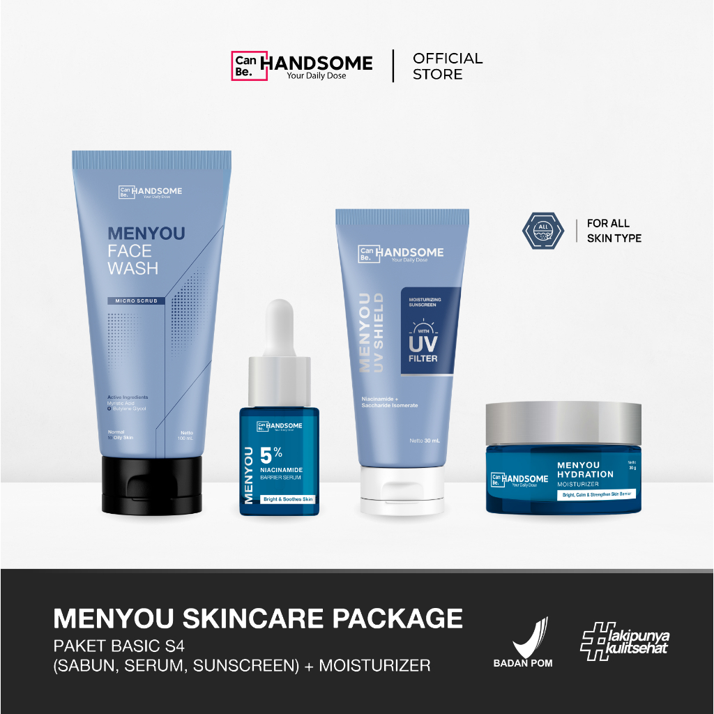 Canbe Handsome - Paket Basic S4 Moisturizer (Sabun+Serum+Sunscreen & Moisturizer) || Skincare BPOM