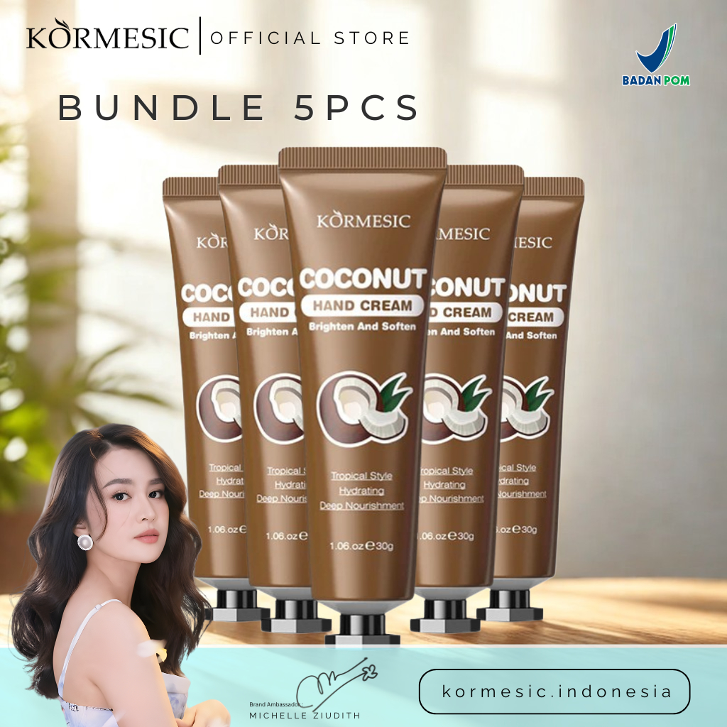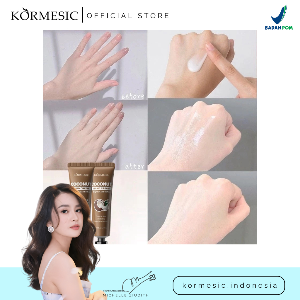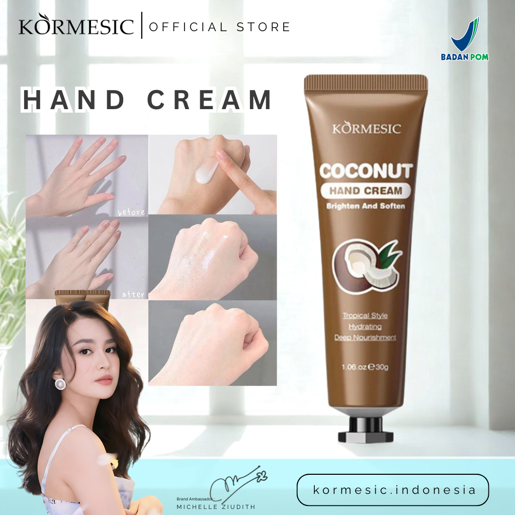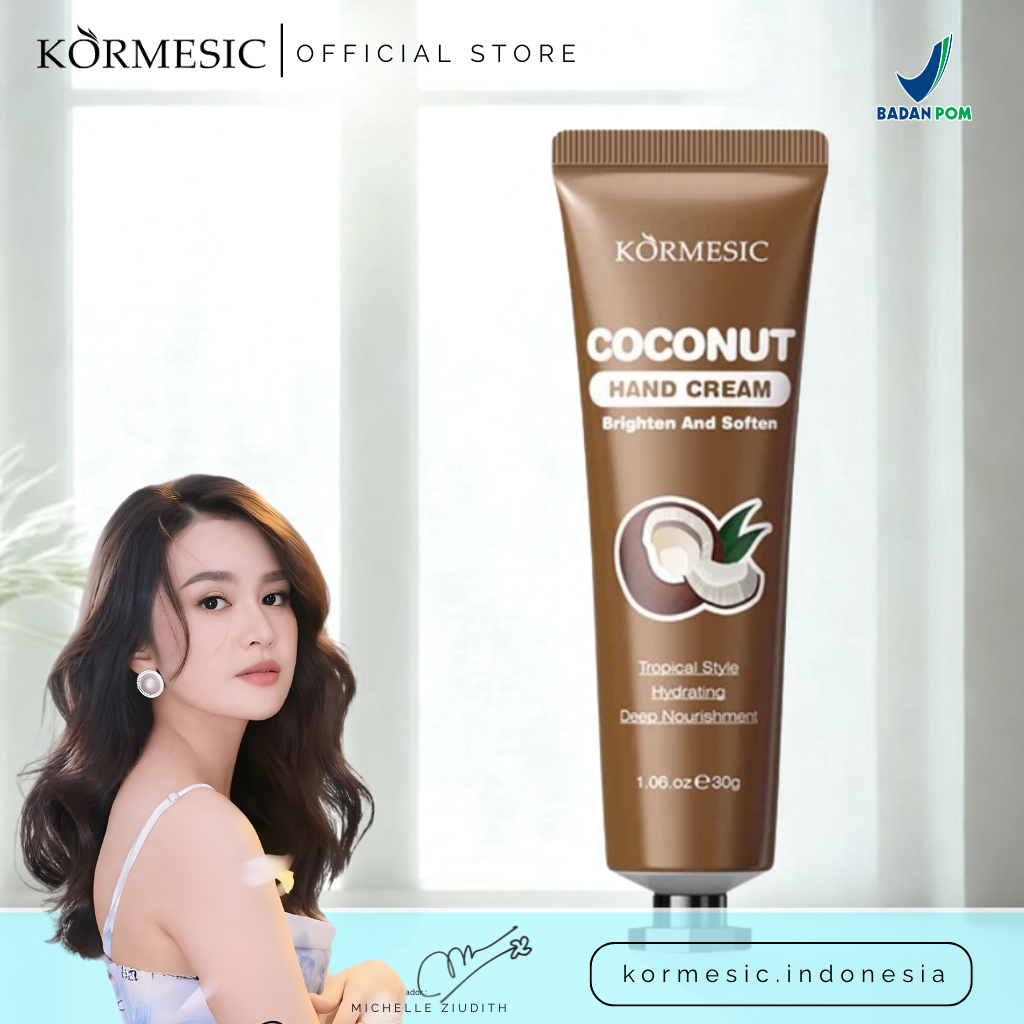 KORMESIC Coconut Hand Cream 30g - Hand Cream Lotion Melembapkan - Krim Tangan untuk Kulit Kering Kasar Pecah Pecah - Wangi Kelapa - Cepat Meresap - BPOM