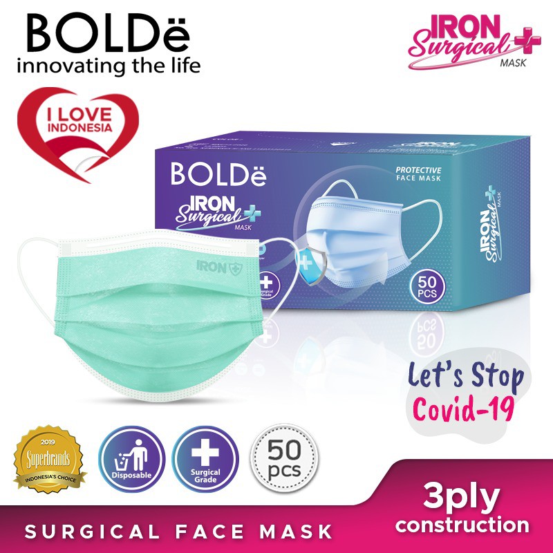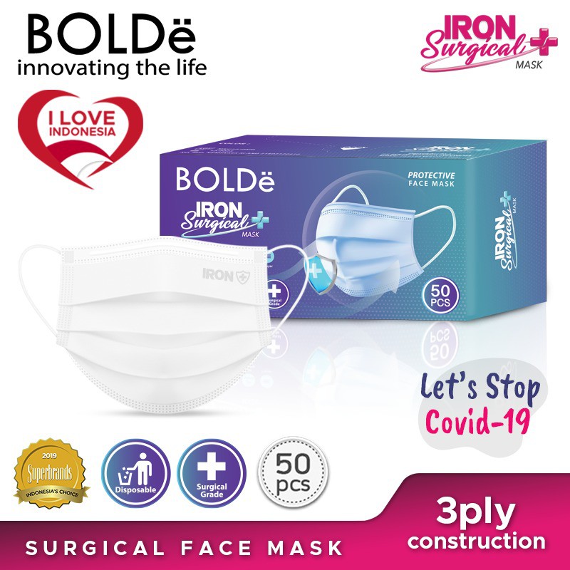 BOLDe IRON PLUS MASKER MEDIS KEMENKES RI 3ply 50/boX