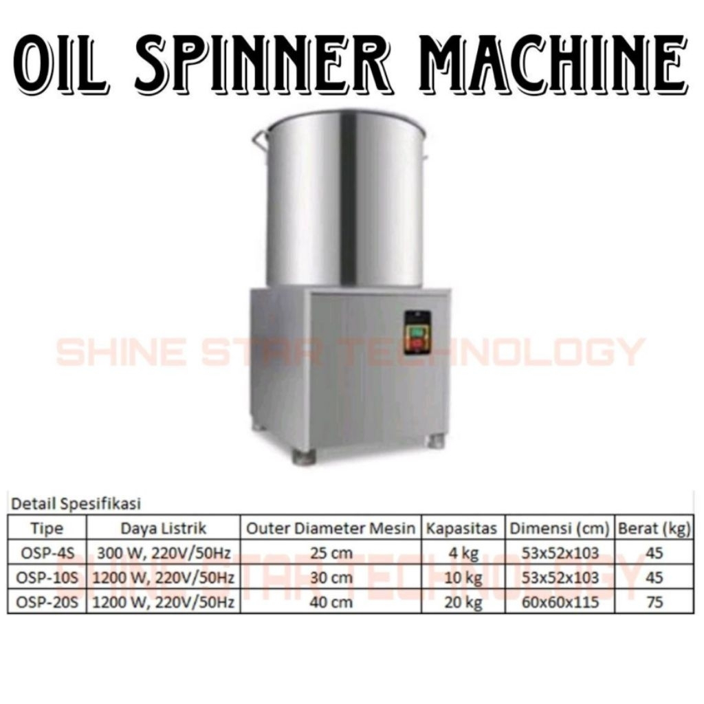 Fomac Oil Spinner Machine OSP-4S , OSP-10S , OSP-20S Mesin Peniris Pemeras Spiner Minyak