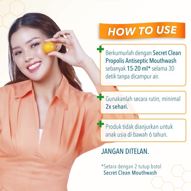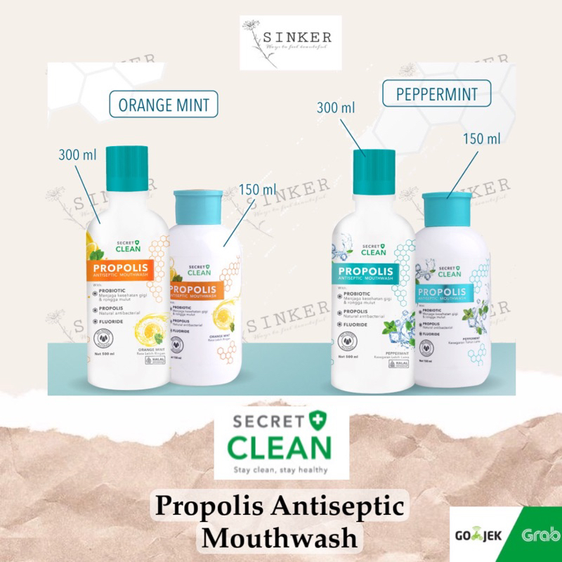 SECRET CLEAN Propolis Antiseptic Mouthwash Orange Mint Peppermint 150ml 500ml
