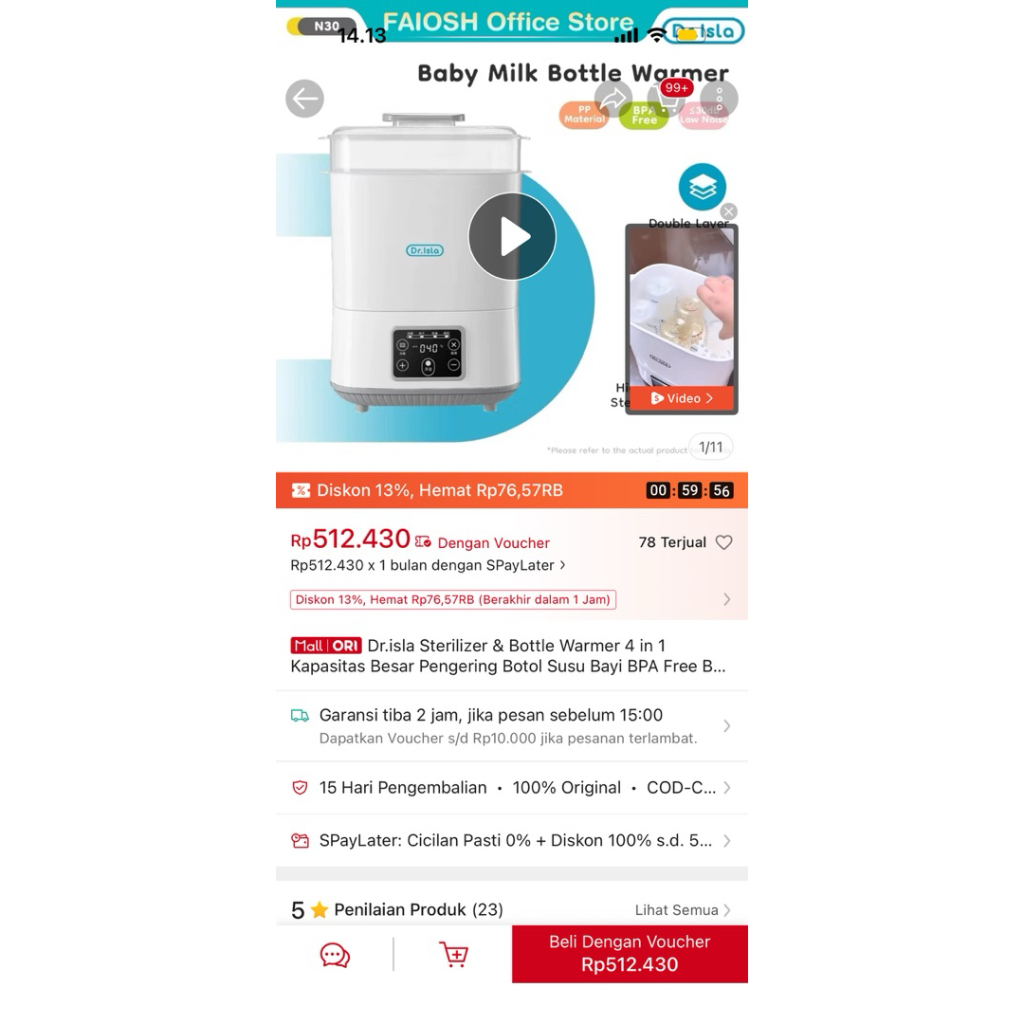 Preloved Dr.isla Sterilizer & Bottle Warmer 4 in 1