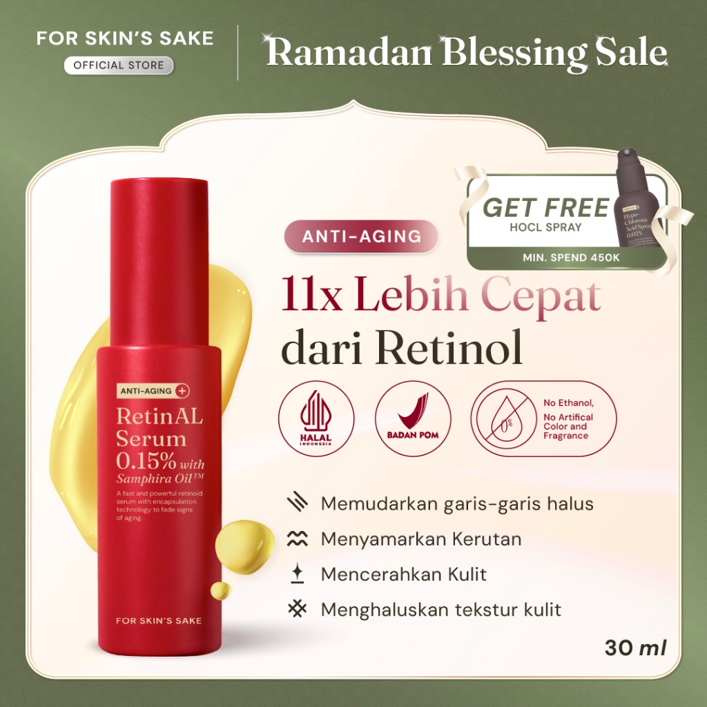 For Skin's Sake FSS Retinal Serum 0.15% with Samphira Oi Serum Retinoid Untuk Memudarkan Garis Halus Memudarkan Kerutan Menghaluskan Tekstur Kulit