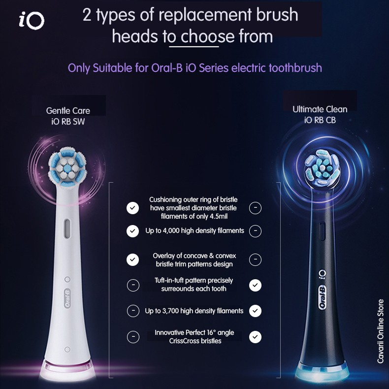 ORIGINAL Oral-B iO Replacement Brush Head, Kepala Sikat Gigi Refill Oral B OFFICIAL Ultimate Black Gentle Care Radiant White