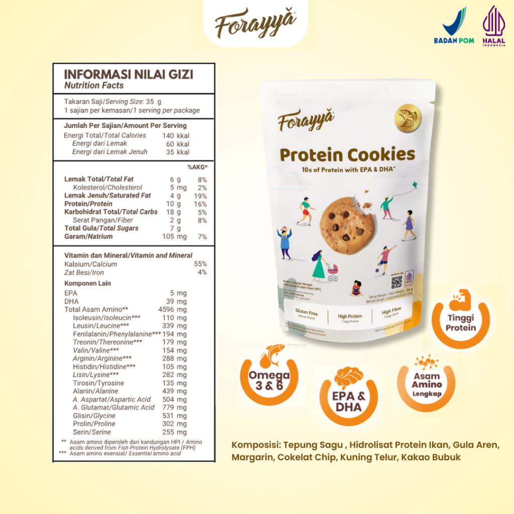 Protein Cookies Forayya 35g - Healthy Snack Tinggi Protein Gluten Free